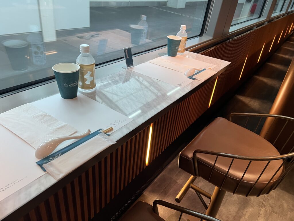 カフェテリアに到着。入るとすぐにアテンダントさんから予約を確認され、席に通されました。